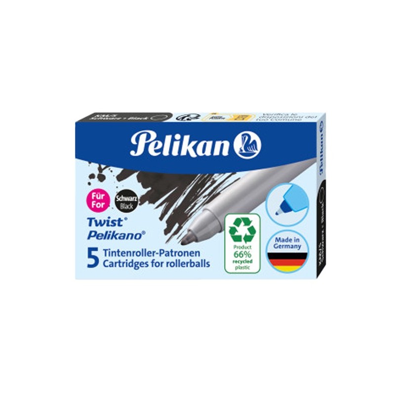 Cartucce con punta in feltro incorporata. Adatte per sferografiche Grand Prix, Twist® e Griffix®. Ogni astuccio contiene 5 cartucce. Realizzate con il 65% di plastica riciclata.