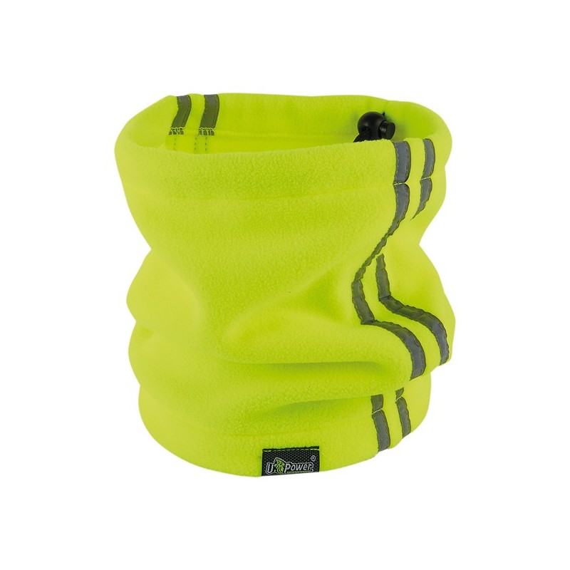Scaldacollo in pile con regolatori e logo U-Power ricamato. Dettagli reflex per aumentare la visibilità nei colori fluo.