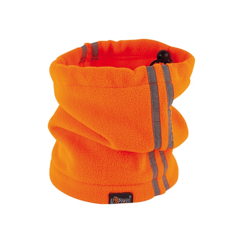 Scaldacollo in pile con regolatori e logo U-Power ricamato. Dettagli reflex per aumentare la visibilità nei colori fluo.