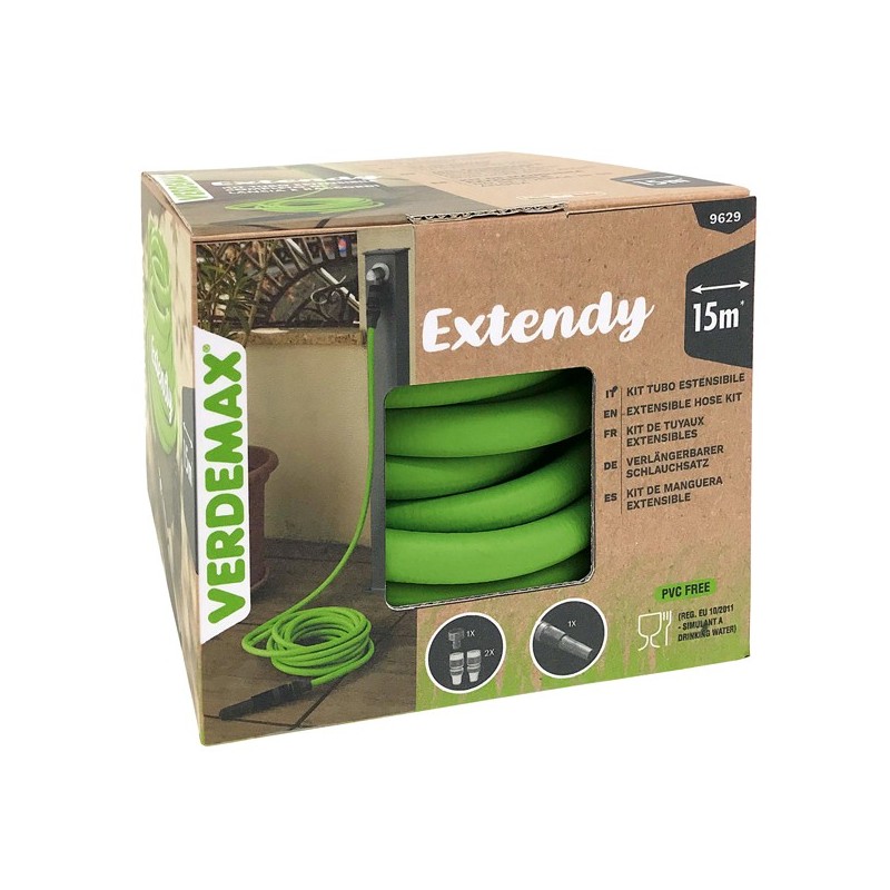 Tubo ultraleggero, si estende fi no a 2 volte la sua lunghezza ed è resistente all'abrasione. Completo di raccordi e lancia.