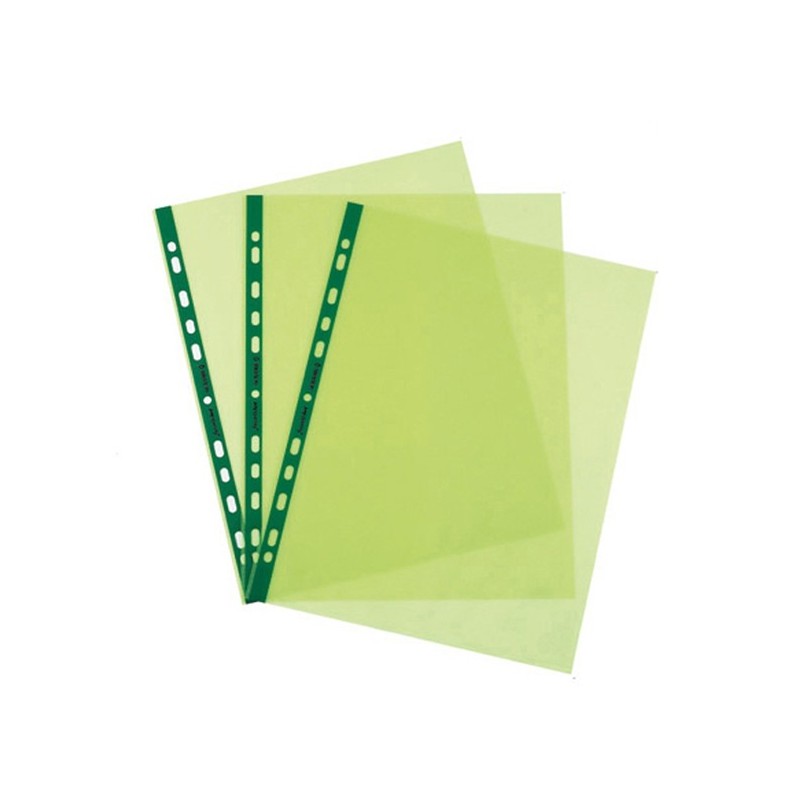 Busta forata in verde realizzata in polipropilene trasparente liscio, con foratura universale. Altissimo spessore e massima protezione dei documenti. Formato 22x30cm. Made in Italy