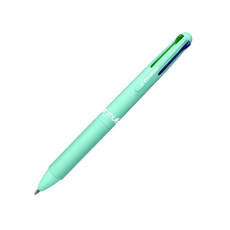 Penna a sfera con 4 colori di inchiostro (blu, rosso, verde e nero). Inchiostro ultra-fluido e super scorrevole, punta 1.0mm. Dotata di pratica clip.
