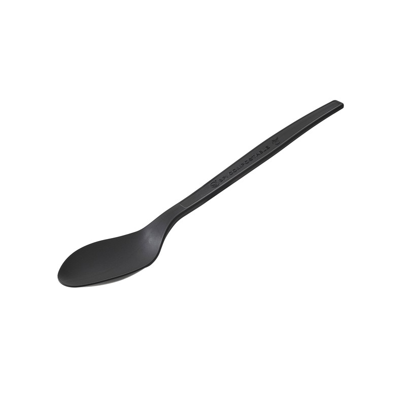 Cucchiaio realizzato in CPLA , ovvero PLA Cristallizzato, polimero derivato del mais resistente fino a 85°C. Biodegradabile e compostabile secondo norma EN13432. • Dimensioni : 16 cm • Peso unitario: 4.56gr • Colore: nero