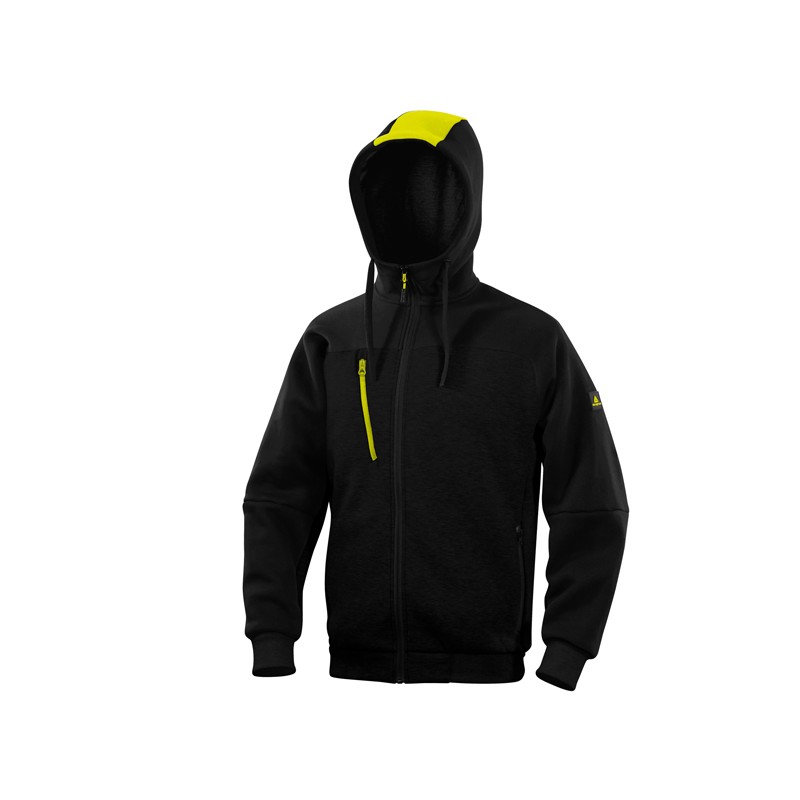 Felpa con cappuccio fisso a zip intera, che unisce stile e calore. 3 tasche esterne con zip e 2 tasche interne. Su ordinazione tutte le taglie da S a 3XL.