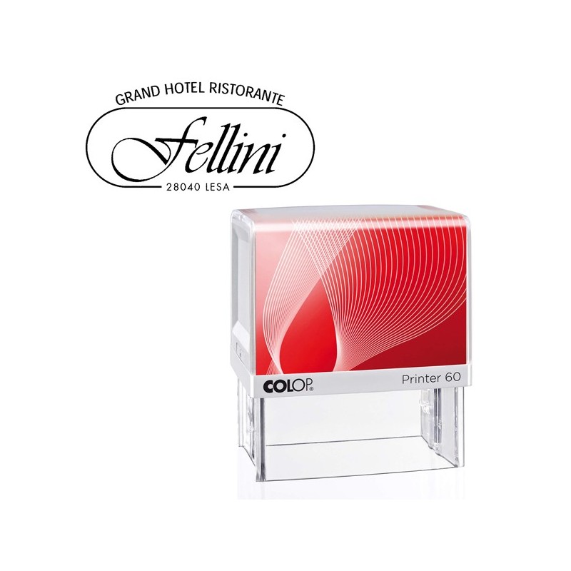 Timbro Printer 60 G7 autoinchiostante. Compatto con nuova montatura in ABS antiurto. Ampio spazio per individuazione del timbro. Dotato di tampone inchiostrato di colore nero. Personalizzabile su 8 righe con logo, indirizzo o altro testo. Area stampa 37x76mm. Tampone di ricambio E/60.