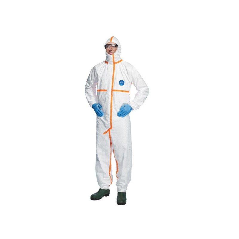 Tuta in Tyvek® con cappuccio, cuciture rinforzate e nastrate. Elastico passadito. Nastratura aggiuntiva sulla patta, copripolsi, caviglie, cappuccio e cerniera. Elastico ai polsi, alle caviglie e attorno al viso. Elastico in vita (incollato). Zip in Tyvek®. Patta autoadesiva sulla cerniera e al mento per un’aderenza perfetta del respiratore. Rilascio particellare testato. Barriera contro rischio biologico. Trattamento antistatico (interno). DPI categoria III. Su ordinazione tutte le taglie dalla M alla 2XL. Tyvek® è un materiale sintetico al 100% realizzato con fibre di polietilene ad alta densità. Leggero, robusto e traspirante, ma nello stesso tempo resistente all’acqua, all’abrasione, alla penetrazione batterica e all’invecchiamento, consente di essere impiegato in molteplici settori.