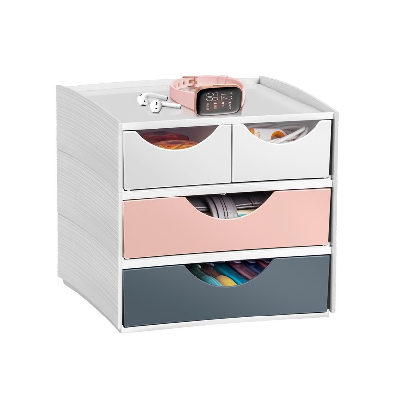 Mini modulo di archiviazione che troverà facilmente il suo posto sulla tua scrivania per raccogliere e riporre tutti i tuoi piccoli accessori per l'ufficio: chiavi USB, spillatrici, post-it, graffette, ecc. Le maniglie ergonomiche incavate assicurano un'apertura facile dei cassetti. Cassetti opachi o trasparenti per preservare la riservatezza o per una visualizzazione rapida dei contenuti. I cassetti sono dotati di fermi di ritenuta, ma possono anche essere facilmente rimossi dal modulo se necessario. Le stazioni di archiviazione possono essere impilate l'una sopra l'altra, per creare una soluzione di archiviazione su misura per il tuo spazio di lavoro. Piedini antiscivolo inclusi per una posizione sicura sulla tua scrivania. Dimensioni utili di un cassetto grande: 157 x 169 H 42 mm, di un cassetto piccolo: 157 x 80 H 42 mm. Dimensioni complessive: 186 x 185 H 175 mm. Realizzato al 100% in plastica PS di alta qualità e completamente riciclabile.