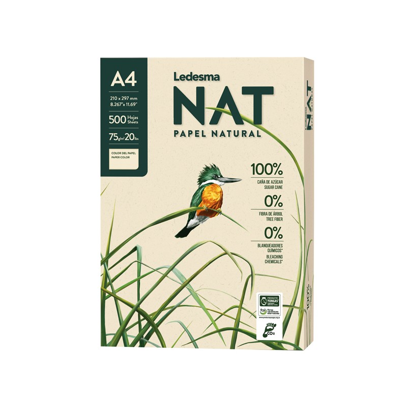 Ledesma Nat è una carta per ufficio super ecologica, prodotta al 100% con canna da zucchero, una materia prima sostenibile perché cresce molto rapidamente. Coltivata nel nord dell’Argentina, ai piedi delle montagne, la canna da zucchero da vita ad una carta, leggermente ruvida in superficie, molto opaca, bellissima da usare, vedere e toccare. Certificazioni disponibili Yungas product certification e carbon footprint verifications. Confezione da 5 risme da 500fg. Materia prima: 100% canna da zucchero, 0% di fibre legno, 0% sbiancanti chimici Colore: canna da zucchero Formato: A4 - 21x29,7cm Grammatura: 75gr Risma da 500 fogli Scatola da 5 risme