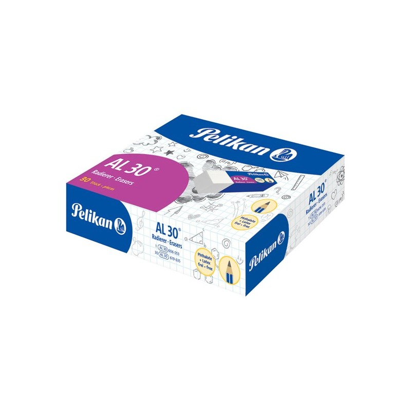 Gomma in vinile AL/30 realizzata a basa di materie prime selezionate e lavorate utilizzando tecnologie all'avanguardia. Adatta a tutte le superfici. Bianca, per tratti di matita. Forma a blocchetto.