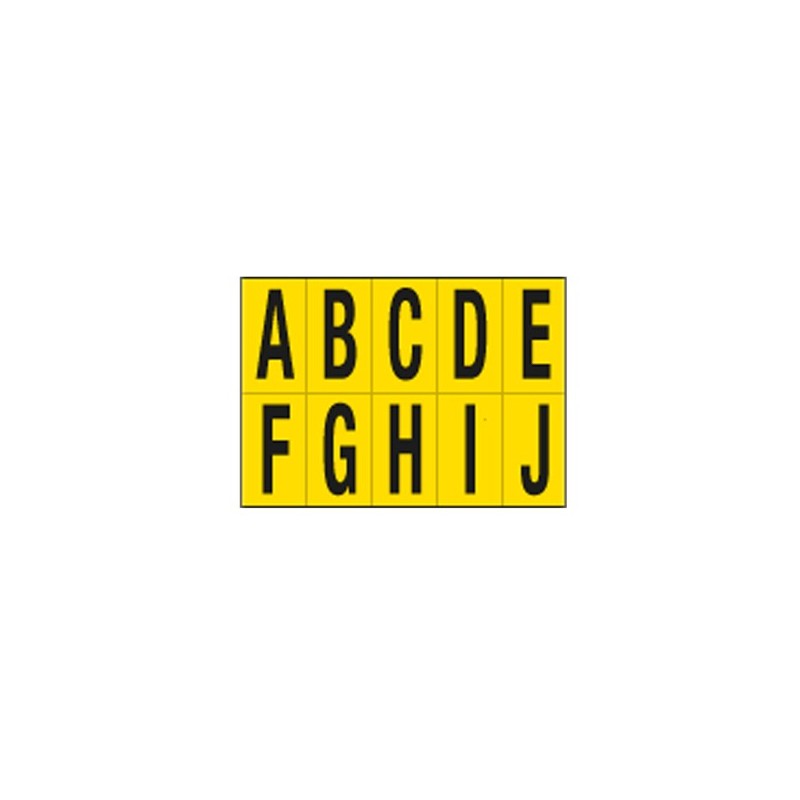 Etichette adesive. Formato foglio: 350x250mm. Formato etichetta: 70x124mm. Altezza carattere: 103mm. Colore: scritta nera su foglio giallo.
