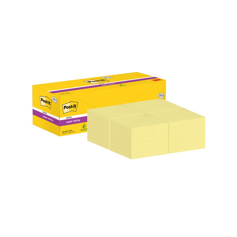 Valuepack 20+4 blocchi foglietti Post-it® Super Sticky, 90fogli 76x76mm giallo Canary.