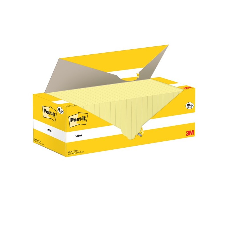 Value pack 18+6 blocchi foglietti Post-it® Notes, 100fogli 76x76mm giallo Canary.