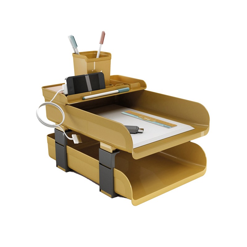 Set scrivania vintage pratico e utile per la scrivania. Contiene il necessario per organizzare carte e accessori: 2 portacorrispondenza con distanziali - 1 bacinella - 1 portapenne - 1 righello cm. 16. 3 colori disponibili: azzurro sugar - ocra caramel- avorio milk.