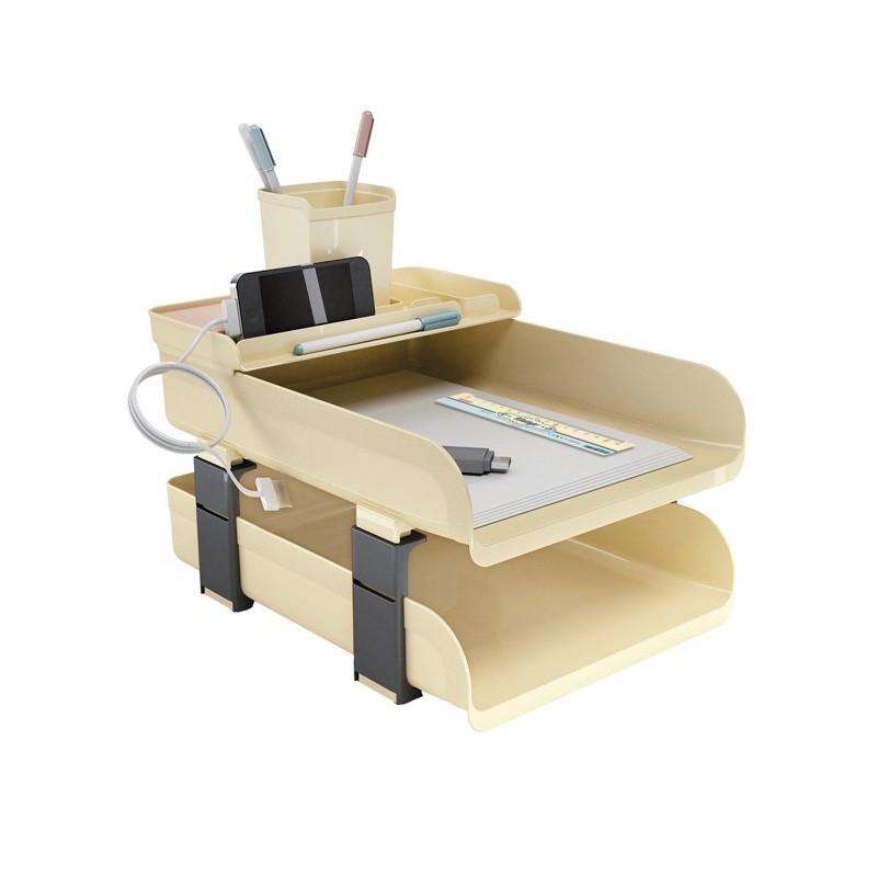 Set scrivania vintage pratico e utile per la scrivania. Contiene il necessario per organizzare carte e accessori: 2 portacorrispondenza con distanziali - 1 bacinella - 1 portapenne - 1 righello cm. 16. 3 colori disponibili: azzurro sugar - ocra caramel- avorio milk.