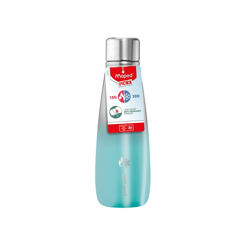 Borraccia termica in acciaio inox. Attraverso la doppia parete mantiene il liquido freddo (per 30 ore) o caldo (per 15 ore). Da portare con sé e a prova di perdita. Dimensione ideale per essere inserita nel lunch bag.