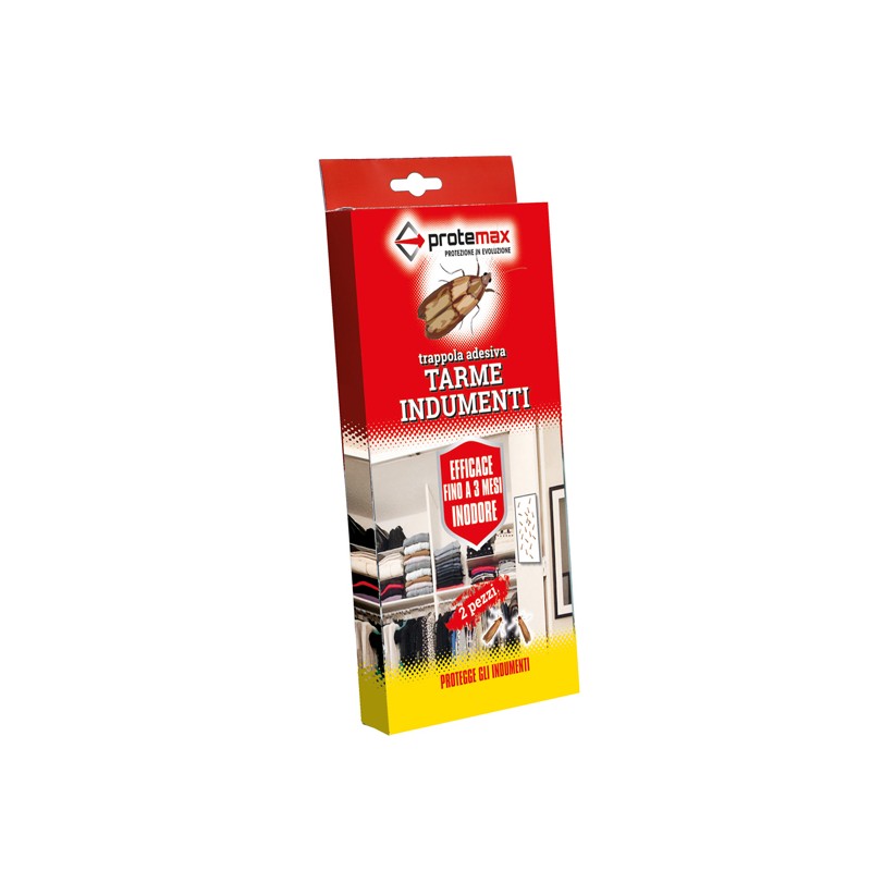 Blister contenente due Trappole adesivo con attrattivo, protegge gli indumenti negli armadi e nei cassetti dall’attacco delle Tarme o Camole dei tessuti. Non cola, non sporca , non contiene insetticidi, la durata della trappola è di circa 3 mesi cadauna.
