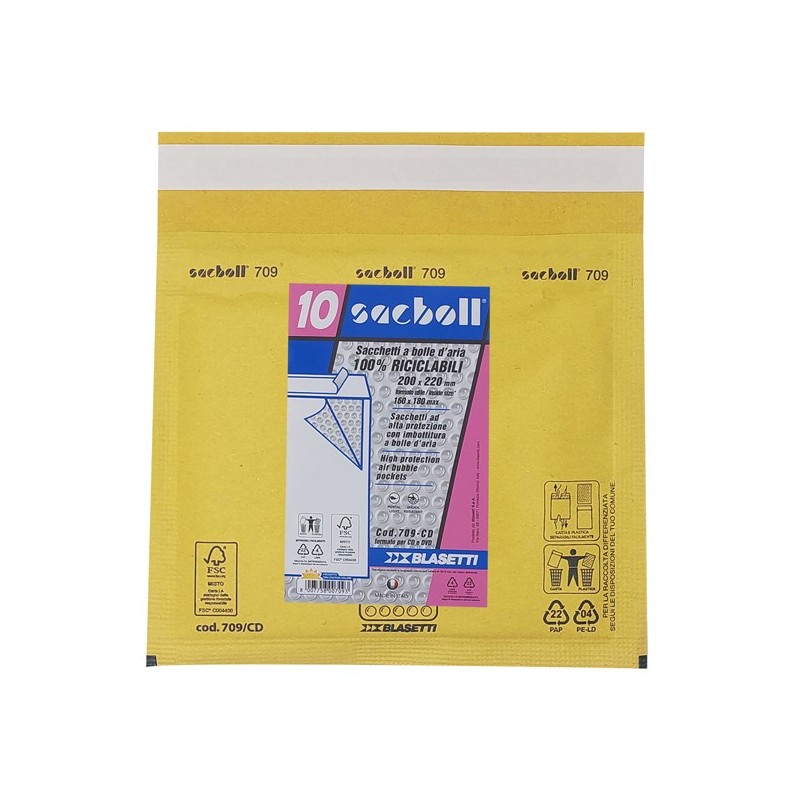 Sacco in carta avana certificata FSC imbottito con pluriboll. Polietilene a bolle. Termosaldato su tre lati.Lembo autoadesivo protetto da Strip Dati tecnici: Modello: CD Formato: 20x22cm Formato interno : 16x18cm Cartone certificato FSC