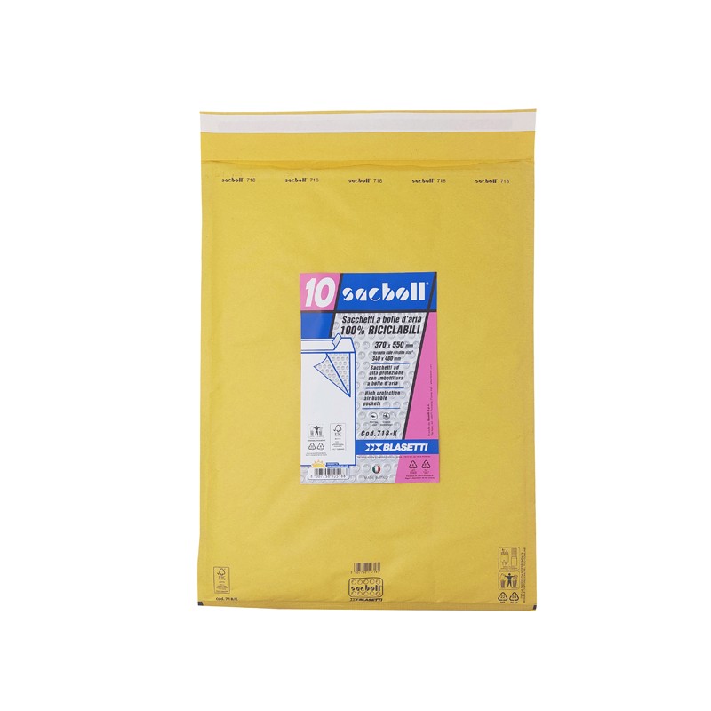 Sacco in carta avana certificata FSC imbottito con pluriboll. Polietilene a bolle. Termosaldato su tre lati.Lembo autoadesivo protetto da Strip Dati tecnici: Modello: K Formato: 37X55cm Formato interno : 34X48cm Cartone certificato FSC