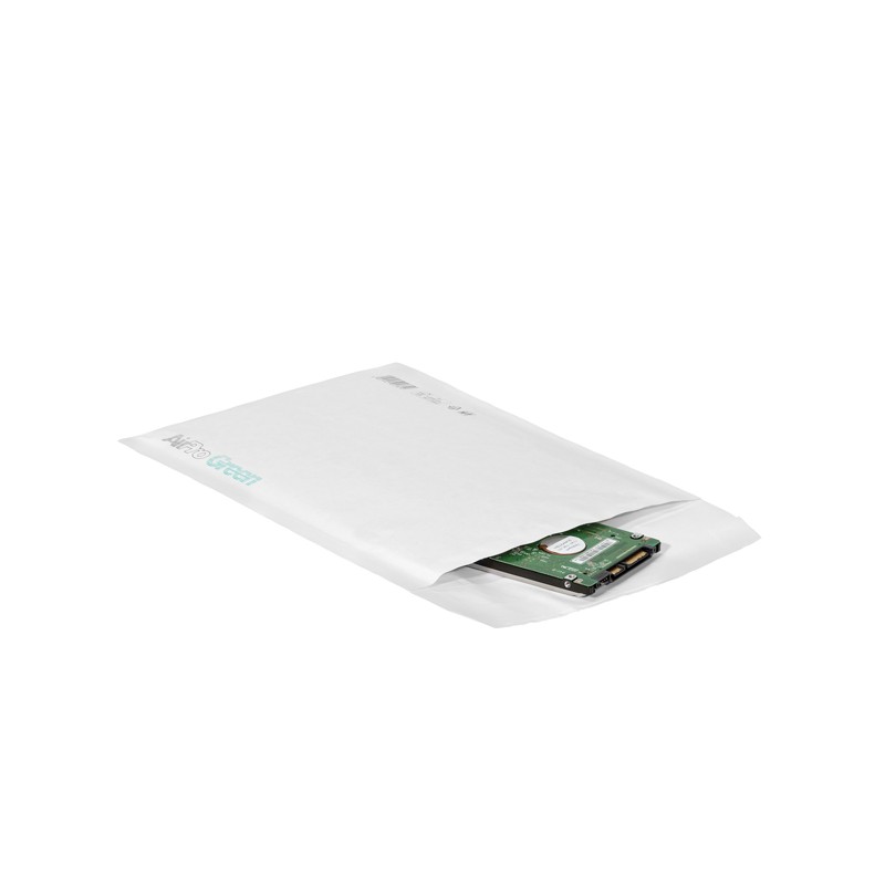Sacchetti imbottiti ecologici senza plastica. La carta goffrata all'interno del sacchetto forma un forte strato di imbottitura che p rotegge i contenuti sensibili dalla pressione e dagli urti. Il destinatario potrà smaltirlo semplicemente nella raccolta differenziata della carta. Possono essere utilizzati in vari settori ed industrie, ideali per proteggere oggetti delicati, dalla pressione e da gli urti. La soluzione perfetta per spedire CD/DVD, libri, souvenir, documenti, parti elettroniche, gioielli, campioni e molto altro. Formato esterno: 250x340mm Formato interno: 230x340mm Materiale: Carta Kraft Riciclato Strato esterno e interno:Carta 75gr/mq Strato Intermedio: Goffrato 100 gr/mq Spessore Prodotto: 7 mm se non compresso chiusura laterale: 10 mm incollata ai lati Chiusura Patella: Strip (hot-melt) Colore: Bianco / Avana / Bianco Resistenza allo Scoppio (DIN EN ISO 2758):680 kPa