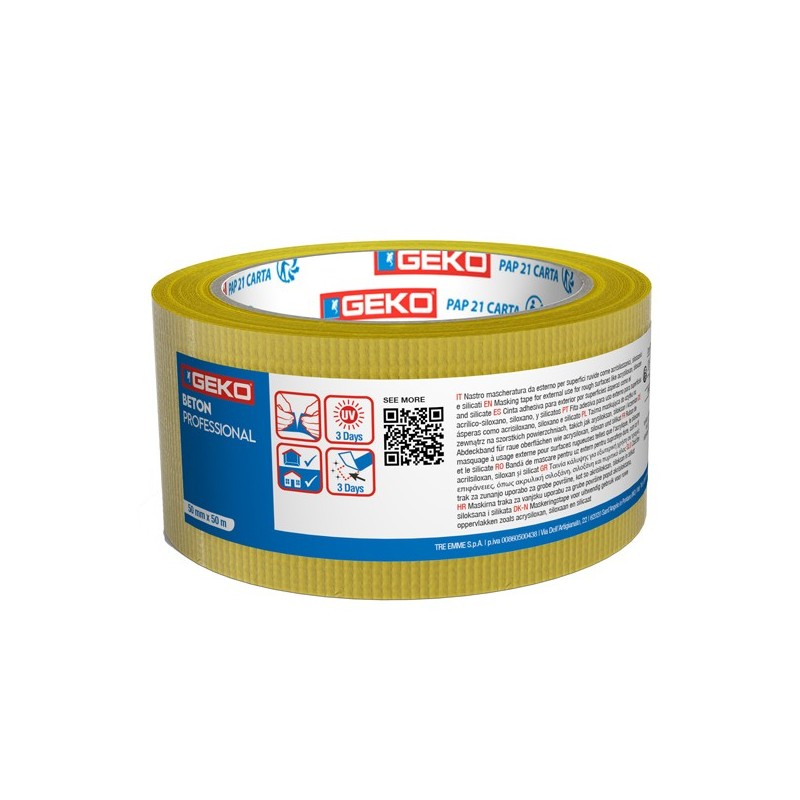 Nastro telato per la mascheratura professionale esterna. Ideale per la mascheratura di superfici ruvide come cemento, mattoni, rivestimenti a spessore acrilici / acrilsilossanici / silossanici / silicati. Ottima adesività e tack, resiste all’esterno fino a 3 giorni dall'applicazione senza rilascio di residui.