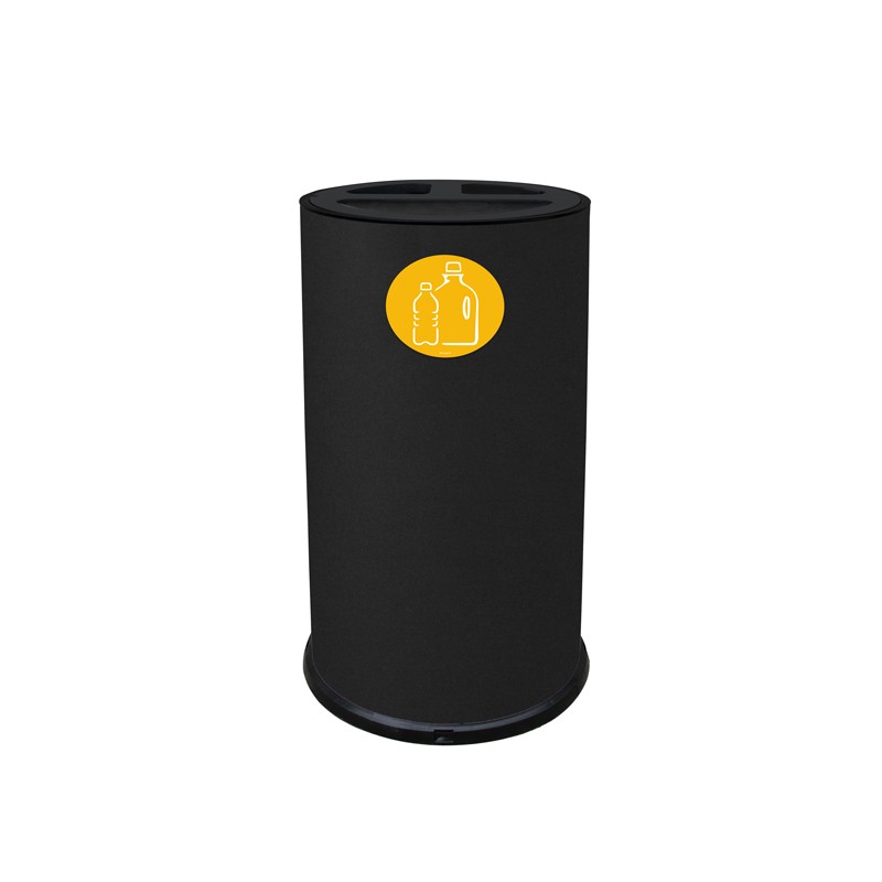 Contenitore tondo 3 scomparti con 4 pittogrammi per raccolta differenziata magnetici in acciaio verniciato. Dimensioni: Ø35xH72cm.