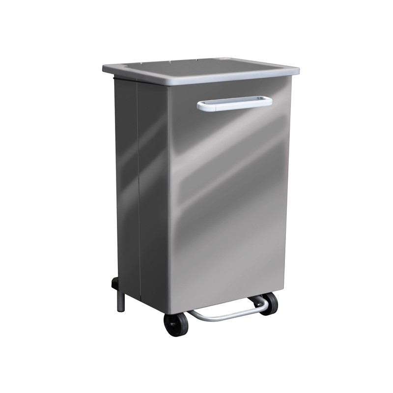 Contenitore a pedale per raccolta rifiuti totalmente in acciaio con svuotamento frontale. Fornito montato. Dimensione: 47x37xH83cm - 90L. Haccp.