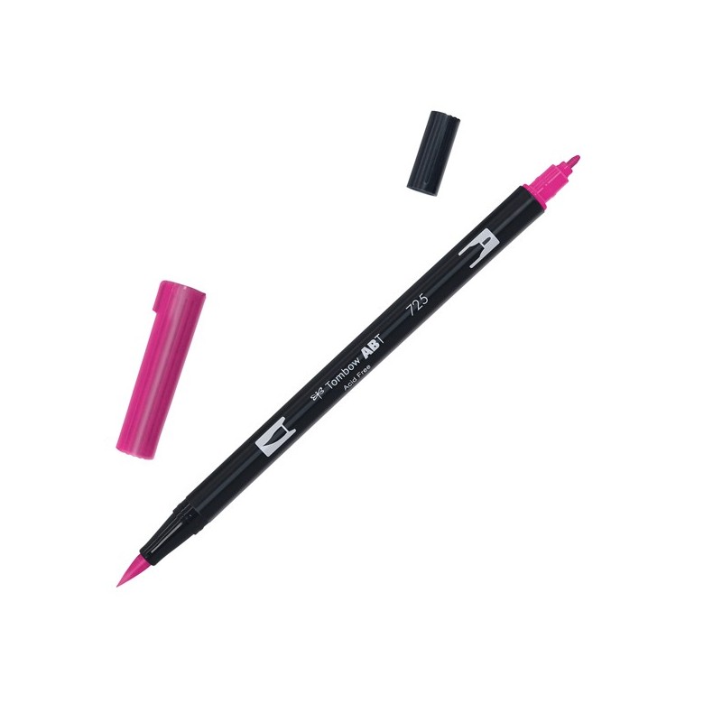 Marker Dual Brush Tombow. Due punte in fibra: sottile per tracciare linee precise, pennello per colorare ampi spazi. Inchiostro a base d'acqua, atossico, inodore, acid free. I colori non sbavano, possono essere miscelati e acquarellati tra di loro per crearne di nuovi.