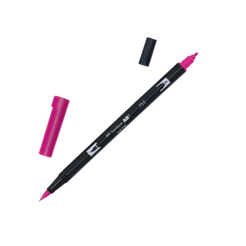 Marker Dual Brush Tombow. Due punte in fibra: sottile per tracciare linee precise, pennello per colorare ampi spazi. Inchiostro a base d'acqua, atossico, inodore, acid free. I colori non sbavano, possono essere miscelati e acquarellati tra di loro per crearne di nuovi.