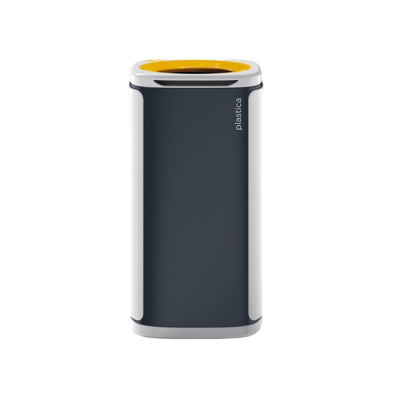 Il design elegante e moderno permette la sua collocazione in ogni tipo di ambiente. Ideale per creare isole ecologiche in ufficio e negli spazi pubblici. Due aree circolari, presenti ai lati della scocca esterna, contengono dei magneti per far agganciare facilmente i vari moduli. Contenitori stabili costruiti con materiali robusti, al 100% riciclabili. Facile e veloce il sistema per lo svuotamento del sacco con apertura a basculante del coperchio. Capacità cestino 60 lt. Dimensioni: (LxPxH) 34x34,5x70,5.