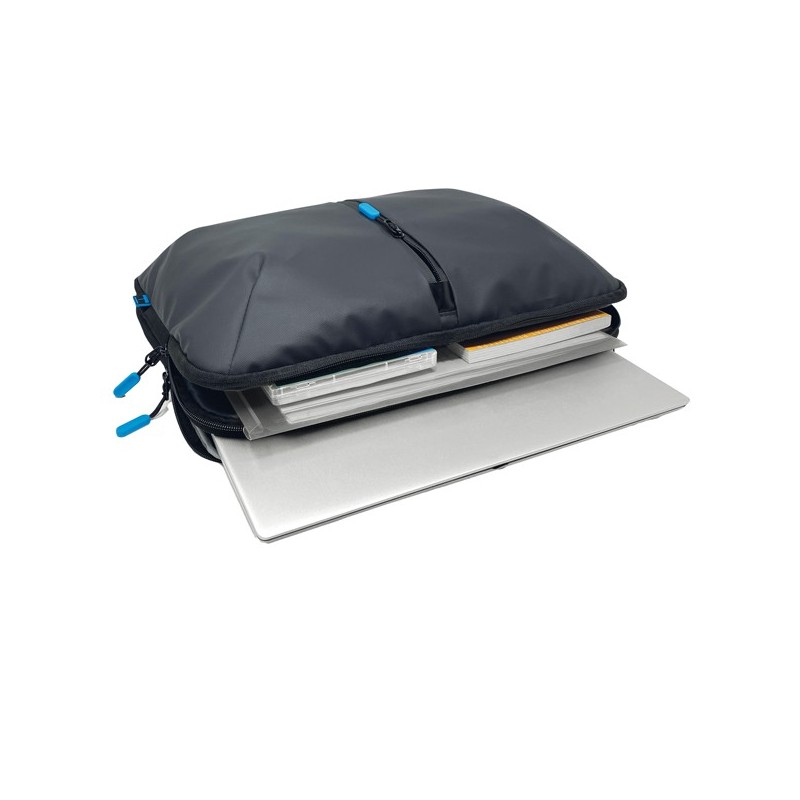 Borsa sleeve in tessuto tecnico antigraffio e antipioggia con scomparto frontale con zip. Scomparto imbottito antiurto per PC/Tablet. Dimensioni: 41x31x5cm