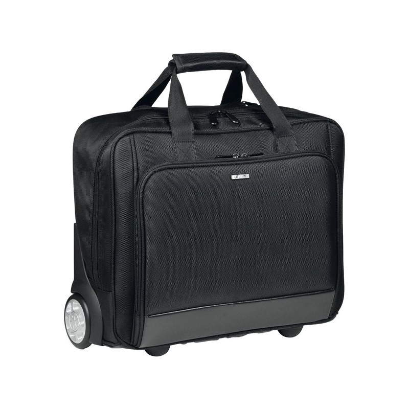 Trolley in tessuto tecnico extra strong. Grande scomparto centrale con divisorio. Tasca frontale con cerniera e vani portaoggetti. Impugnatura extra comfort. Manico telescopico a scomparsa. Dimensioni: 42x38x17cm.