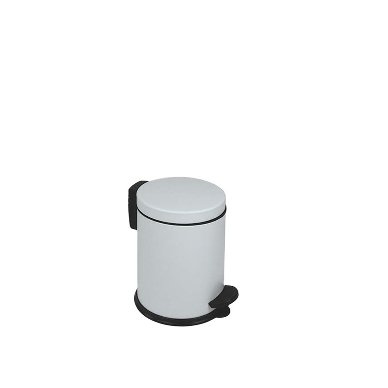 Pattumiera a pedale New Bin Basic in acciaio zincato verniciato a polvere bianca; maniglia di trasporto richiudibile in plastica; pedale in plastica per utilizzo conforme al metodo HACCP; base in plastica.