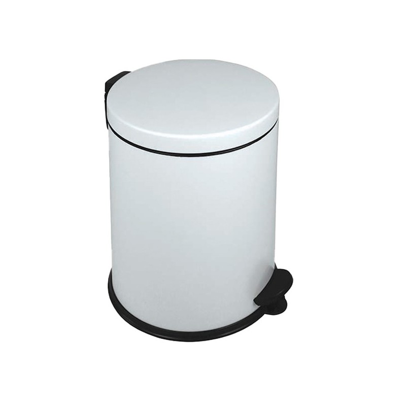 Pattumiera a pedale New Bin Basic in acciaio zincato verniciato a polvere bianca; maniglia di trasporto richiudibile in plastica; pedale in plastica per utilizzo conforme al metodo HACCP; base in plastica.