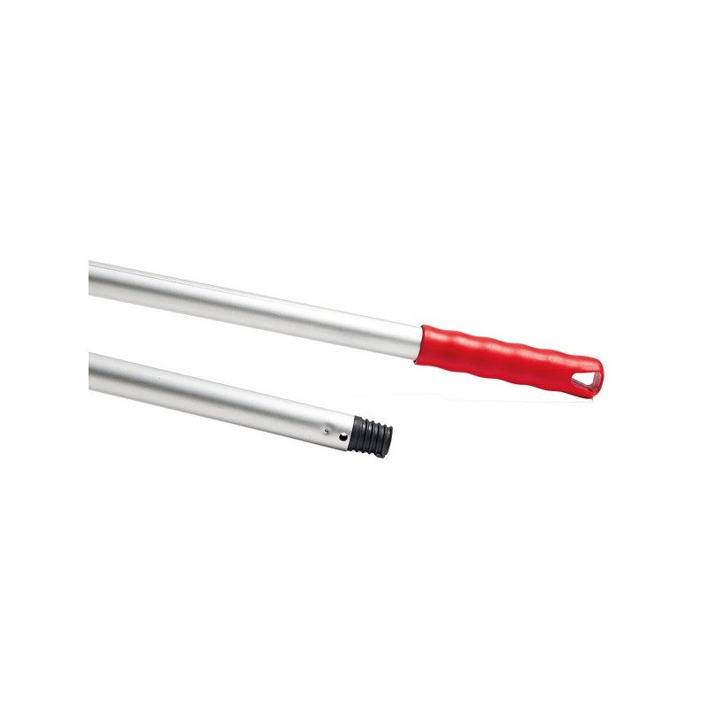 Manico in alluminio con impugnatura in PPL e terminale con vite e foro. Diametro 23mm e 150cm. Sistema colore per prevenire la contaminazione batterica tra diversi ambienti.