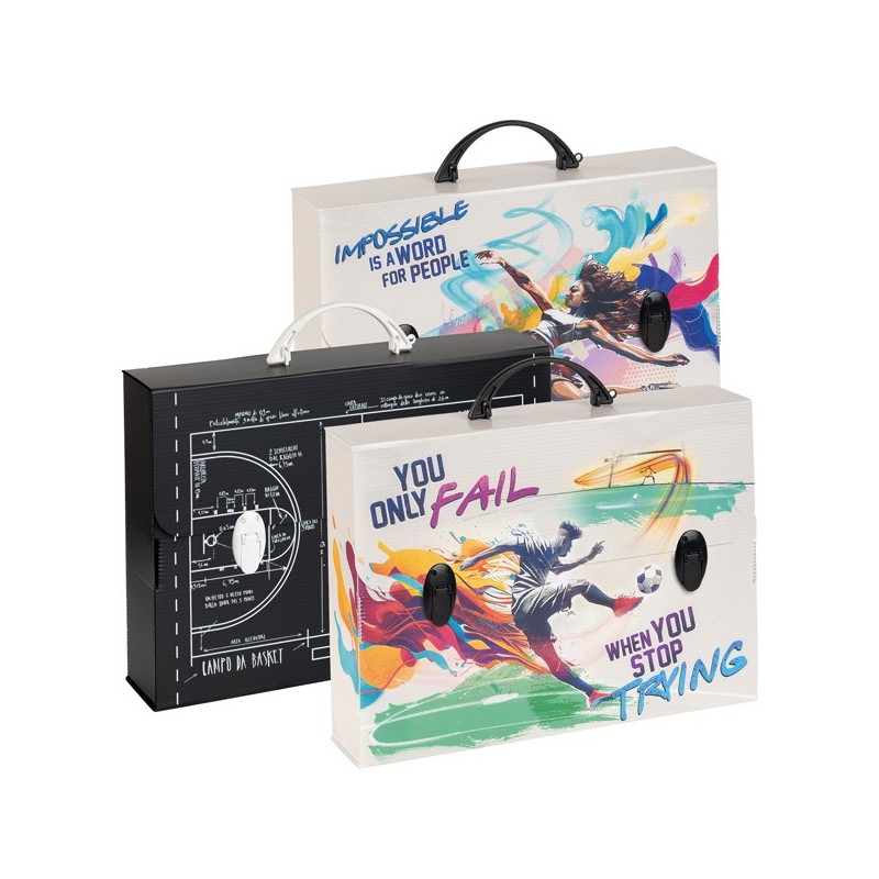Valigette in polipropilene alveolare con stampa in alta risoluzione. 3 Fantasie assortite.