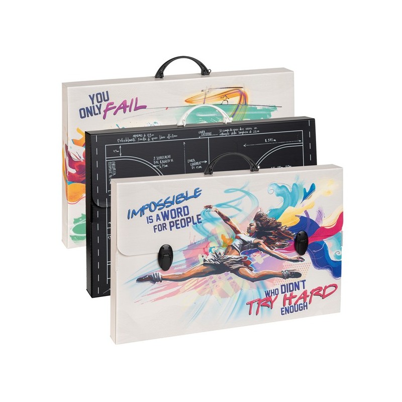 Valigette in polipropilene alveolare con stampa in alta risoluzione. 3 Fantasie assortite.