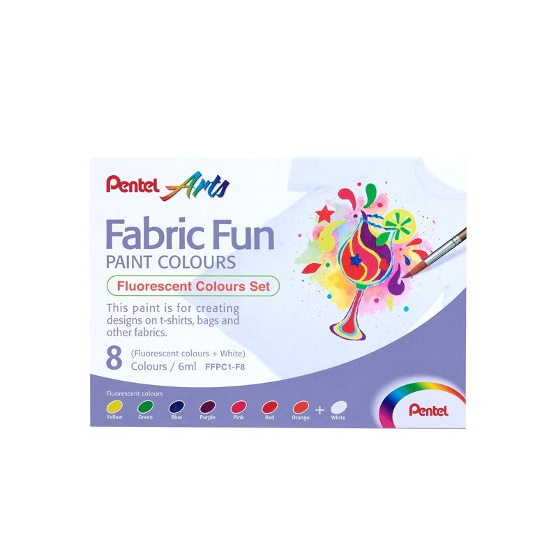 Colore in tubetto per tessuto Fabric Fun - colori fluo assortiti - Pentel - conf. 8 pezzi
