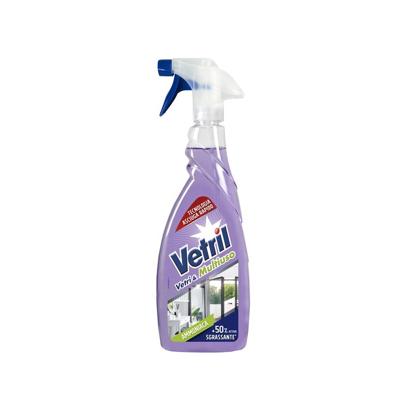 Vetril vetri e specchi anti aloni e con tecnologia asciuga rapido. Rimuove le impronte.