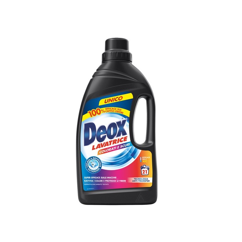 Detersivo lavatrice con formula brevettata antiodore, efficace sulle macchie già a 30 gradi. Fino a 21 lavaggi. Ravviva i colori e protegge le fibre, con tecnologia anti-transfer. Dermatologicamente testato.