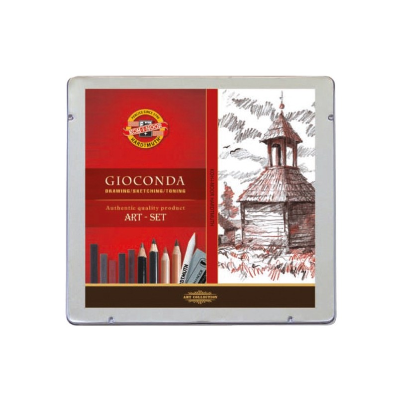 Astuccio in metallo contenente: 16 crete a secco, 2 matite Progresso 2B - 8B, 1 matita Progresso Acquarell 4B, 1 gomma pane, 1 matita grafite 10mm, 1 mina creta seppia, 1 mina creta seppia scura, 1 mina creta bianca, 1 mina creta sanguigna, 1 mina carboncino, 3 mine grafite 2B - 4B - 6B, 1 mina grafite, 3 matite grafite Acquarell 2B - 4B - 6B, 1 matita creta bianca, 1 matita creta sanguigna, 1 matita creta seppia, 1 matita creta seppia scura, 1 carboncino 2gr, 1 creta "Negro" 2gr