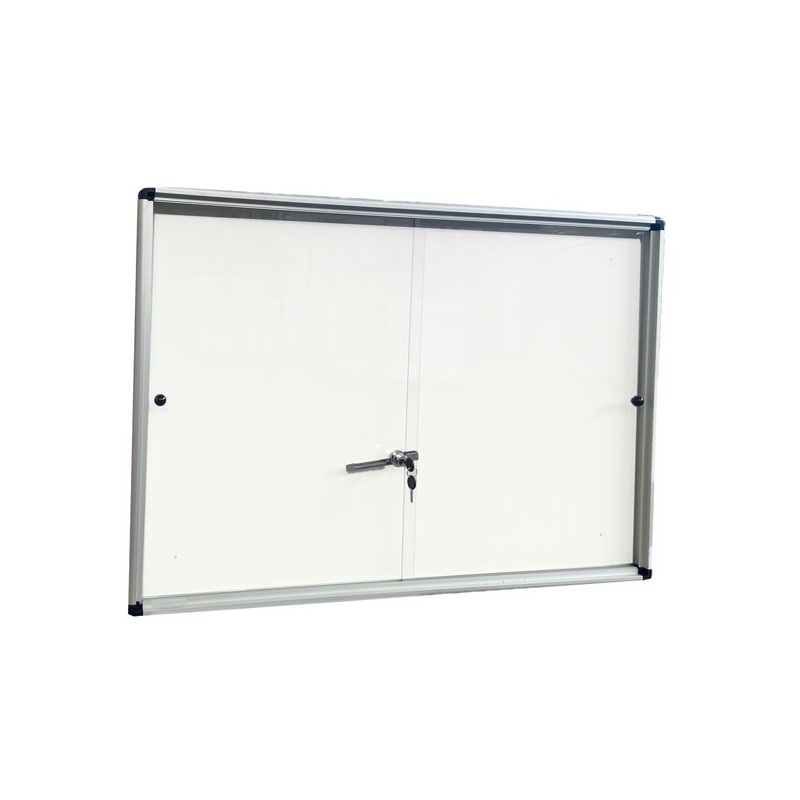 Bacheca Starline per interni in alluminio con fondo magnetico ad ante scorrevoli. Ante in policarbonato trasparente. Formato: 18xA4 ORIZZONTALE Formato esterno: 1500X1000X45mm.