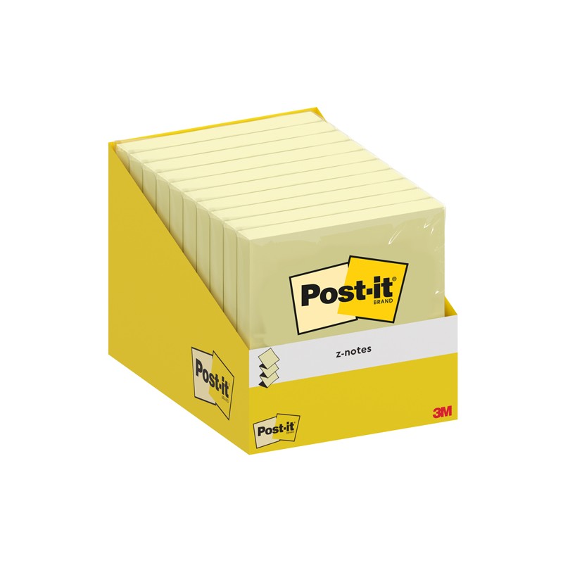 Mini espositore da 10 blocchetti da 100 foglietti Post-it®Z-Notes confezionati con film individuale, formato 76x76mm, giallo canary.