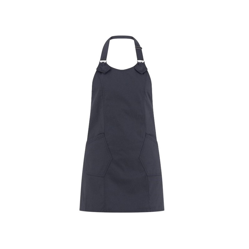 Grembiule Virginia con 2 tasche e allacciatura collo regolabile con fibbia. Colore: nero. Taglia unica. 65% poliestere e 35% cotone.