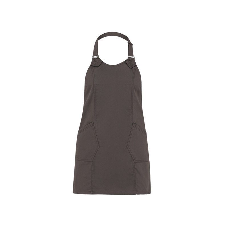 Grembiule Virginia finitura tortora con 2 tasche e allacciatura collo regolabile con fibbia. Colore: tortora. Taglia unica. 98% cotone e 2% elastan.