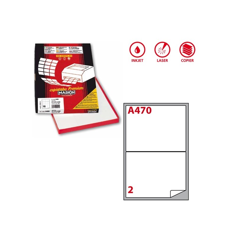 Scatola da 100fg da 21x29,7cm di etichette adesiva permanente bianche. Etichette con angoli tondi. Adatte per stampanti inkjet, laser e copy.