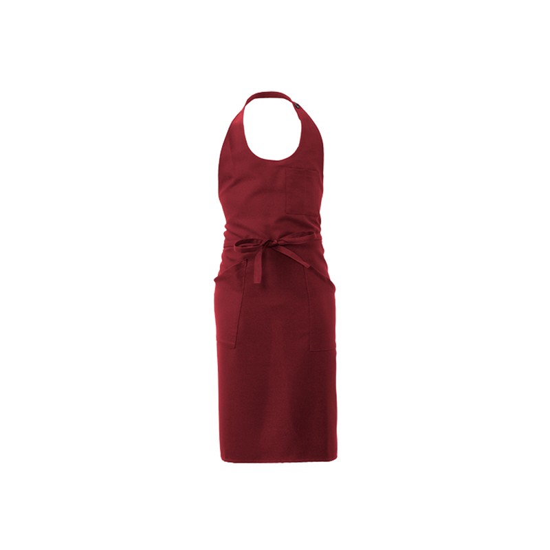 Grembiule Capri con 2 taschini portapenne, 2 tasche e allacciatura collo regolabile con bottoni. Misure: 81x122,5cm. Colore: bordeaux. Taglia unica. 100% poliestere.