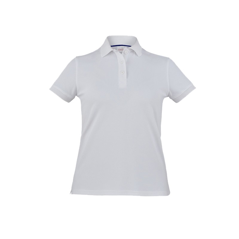 Polo donna Susan con collo e fondo maniche a costine, spacchi laterali e ricamo manica sinistra. Colore: bianco. Taglie disponibili dalla XS alla 3XL. 100% poliammide. Slim fit. Tecnologia Fresh&Stretch che aumenta la traspirabilità e il comfort. Antistiro.