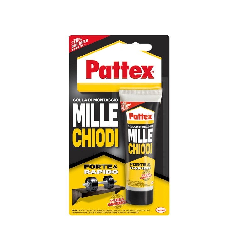 Millechiodi Forte e Rapido è adatto alle seguenti superfici: intonaco (interni), calcestruzzo, calcestruzzo cellulare, pomice, fibrocemento, cartongesso, pannelli di gesso, legno, poliuretano rigido, schiume. Adesivo di montaggio a base acqua.