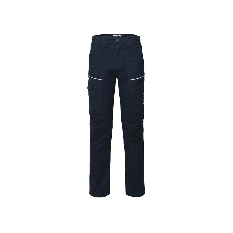 Pantalone da lavoro multitasca e invernale in cotone twill elasticizzato, con elastici laterali e passanti in vita, chiusura con zip e bottone. Tasca laterale porta metro sulla gamba sinistra e tasca laterale chiusa con aletta e velcro su gamba destra. Triple cuciture al cavallo e pences alle ginocchia per maggior comfort. Profili orizzontali nel taglio delle tasche anteriori e 4 bande su tasca porta metro in tessuto rifrangente. Profili e strisce rifrangenti. Su ordinazione tutte le taglie da S a 4XL.