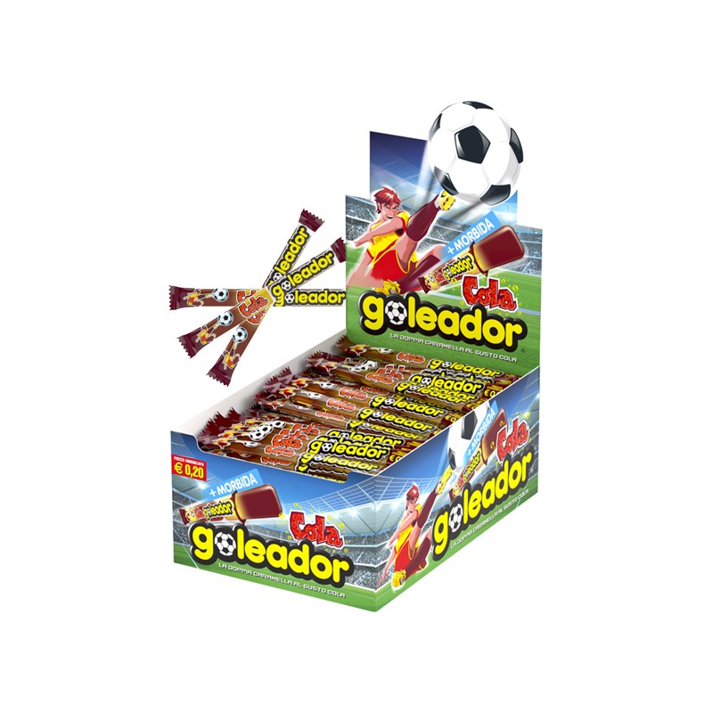 Goleador Cola, la doppia caramella gommosa al gusto cola, senza glutine, in display da 200 pezzi.